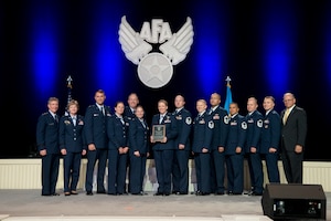 General Herbert J. “Hawk” Carlisle, Commander, Air CombatCommand, Langley Air Force Base, Virginia; and Lt. Gen. Maryanne Miller, Chiefof Air Force Reserve, Headquarters U.S. Air Force, Washington, D.C., andCommander, Air Force Reserve Command, Robins Air Force Base, Georgia, presentthe Air Force
