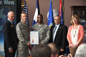 Colorado Springs City Council members Larry Bagley and Andy Pico presented a proclamation declaring July 17, 2015 GPS Day during a ceremony at the headquarters building of Schriever Air Force Base July 15."Whereas the GPS master control station is operated by the 50th Space Wing's 2nd Space